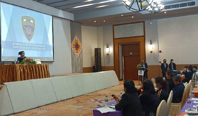 พ.ต.ท.หญิง สุทธกานต์ นาคะเสถียร รอง ผกก.ตม.จว.สมุทรสาคร ร่วมบรรยายโครงการเสริมสร้างการรับรู้ให้กับนายจ้าง