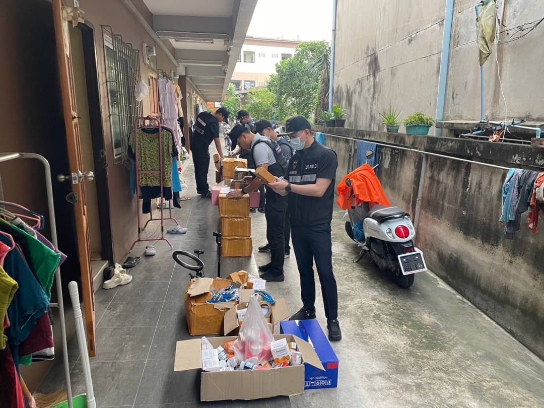 สถานที่จับกุม ห้องเลขที่ 5 ภายในหอพักไม่มีชื่อ เลขที่ 47/487 ม.4 ต.โคกขาม อ.เมืองสมุทรสาคร จว.สมุทรสาคร