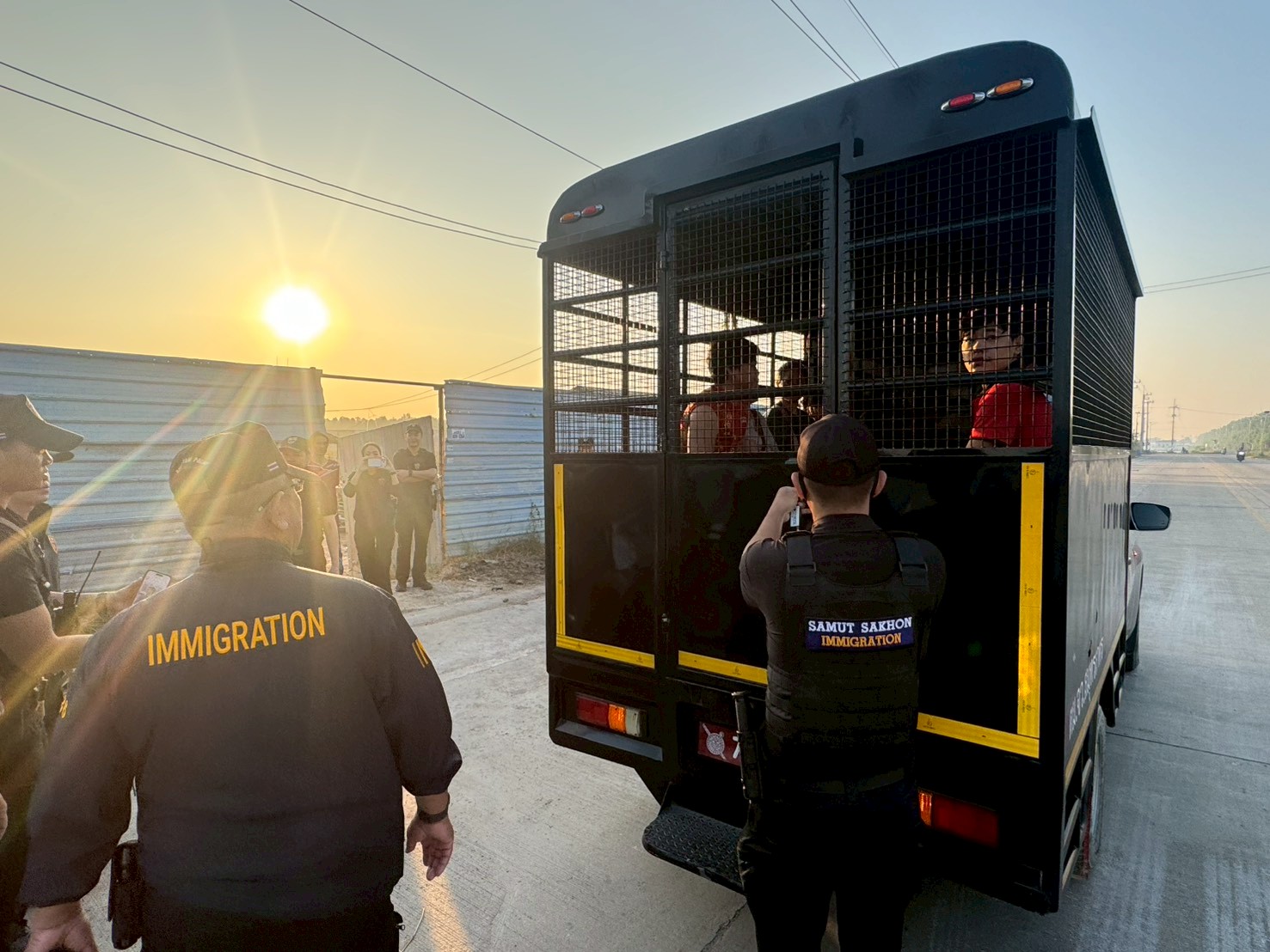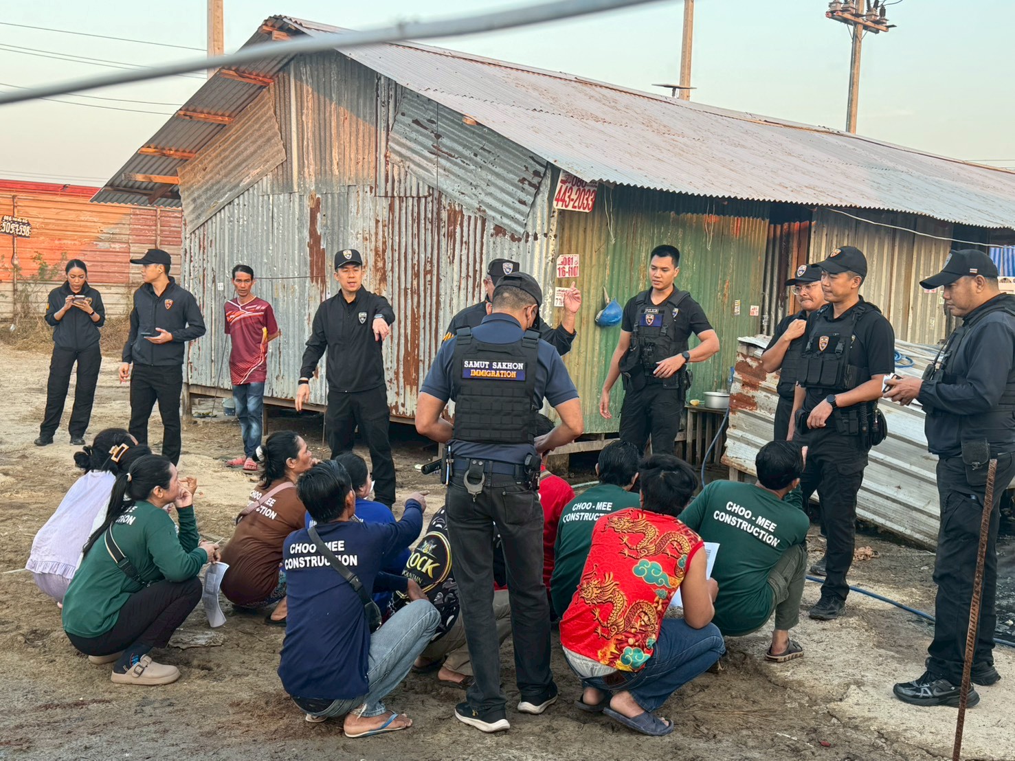 วันนี้ (๒๐ ธ.ค.๖๘) เวลา ๐๖.๓๐ น. พ.ต.อ.สุเมธ เจนวงศ์พิทักษ์ ผกก.ตม.จว.สมุทรสาคร พร้อมด้วย พ.ต.ท.เศรษฐพงศ์ ชูเมือง รอง ผกก.ตม.จว.สมุทรสาคร พ.ต.ต.จิรายุ เชิดฉาย สว.ตม.จว.สมุทรสาคร และเจ้าหน้าที่งาน สส.ปป.ตม.จว.สมุทรสาคร ได้ดำเนินการปิดล้อมตรวจค้นเป้าหมายคนต่างด้าวที่อยู่ในราชอาณาจักรโดยไม่ได้รับอนุญาต หรือกระทำความผิดอื่นใดเกี่ยวกับกฎหมายเข้าเมือง หรือกฎหมายอื่น ณ ก่อสร้างไม่มีเลขที่ จำนวน ๒ จุด บริเวณ หมู่ ๓ ต.พันท้ายนรสิงห์ อ.เมืองสมุทรสาคร จว.สมุทรสาคร