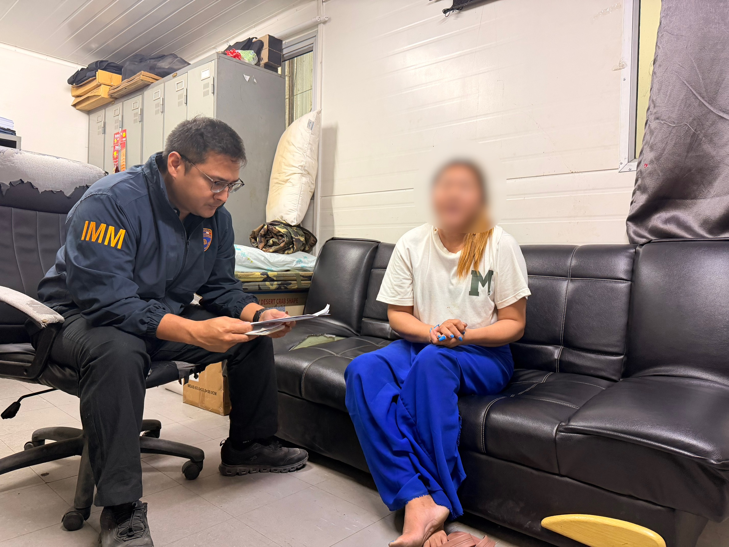กการสืบสวนทราบว่า ก่อนเกิดเหตุ ผู้ต้องหาได้มีพฤติการณ์เปิดห้องพักให้เป็นที่พักพิงแก่บุคคลต่างด้าวสัญชาติเมียนมา ซึ่งลักลอบหลบหนีเข้าเมืองโดยผิดกฎหมาย เข้าพักอาศัยอยู่ในพื้นที่ จนกระทั่งบุคคลต่างด้าวกลุ่มดังกล่าวถูกเจ้าหน้าที่จับกุม และให้การซัดทอดว่า MRS.KHIN SAN KYI เป็นผู้จัดหาที่พักพิงให้ จึงเป็นเหตุให้ศาลจังหวัดสมุทรสาครออกหมายจับ ที่ จ.363/2568 ลงวันที่ 24 ตุลาคม 2568 ต่อมา เจ้าหน้าที่ได้สืบสวนจนสามารถจับกุมผู้ต้องหาได้คือ คือ
