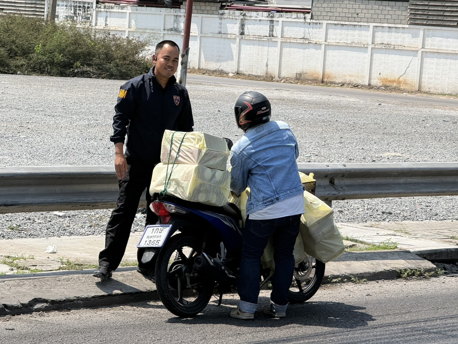 เจ้าหน้าที่ชุดสืบสวนเข้าช่วยเหลือผู้ขับขี่รถจักรยานยนต์ ประสบอุบัติเหตุ (ว.40) ได้รับบาดเจ็บเล็กน้อย พร้อมนำรถเข้าข้างทางเพื่อความปลอดภัย ป้องกันอุบัติเหตุซ้ำซ้อน