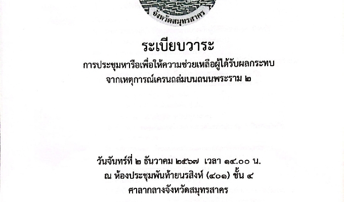 ร่วมประชุมหารือเพื่อให้ความช่วยเหลือผู้ได้รับผลกระทบจากเหตุการณ์เคนถล่อมบนถนนพระราม 2